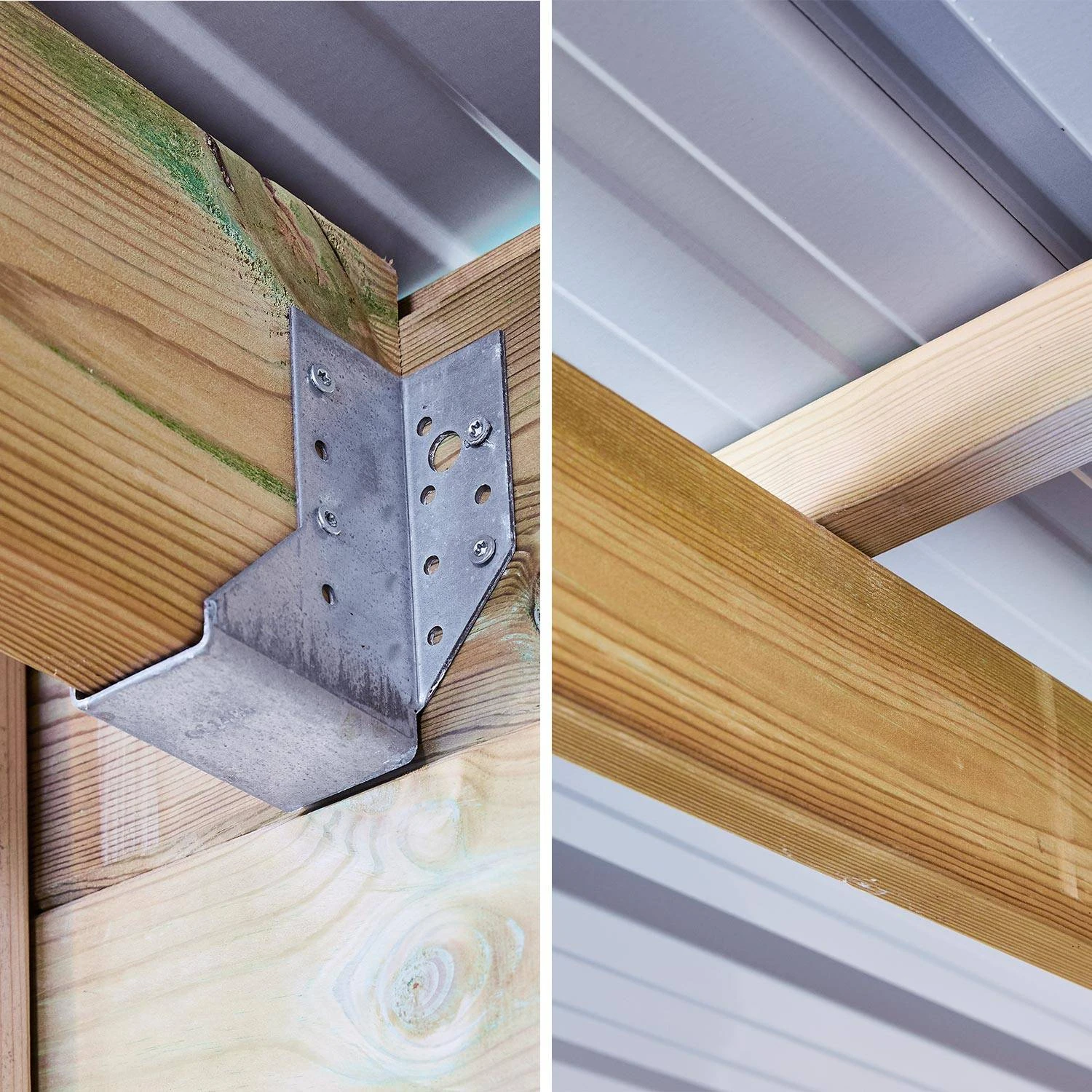 Pour que le bois ne se détériore pas, il est traité autoclave de classe 3. Il a donc bénéficié d’un traitement en profondeur le protègeant des agressions biologiques (insectes et champignons). Néanmoins, l’autoclave est connu pour protéger le bois d’un point de vue mécanique et non esthétique. Pour éviter que la couleur de votre abri évolue vers le gris, il faut alors l’entretenir. La toiture en bac acier 63/100 de cet abri lui offre quant à elle, un ensemble solide et résistant.