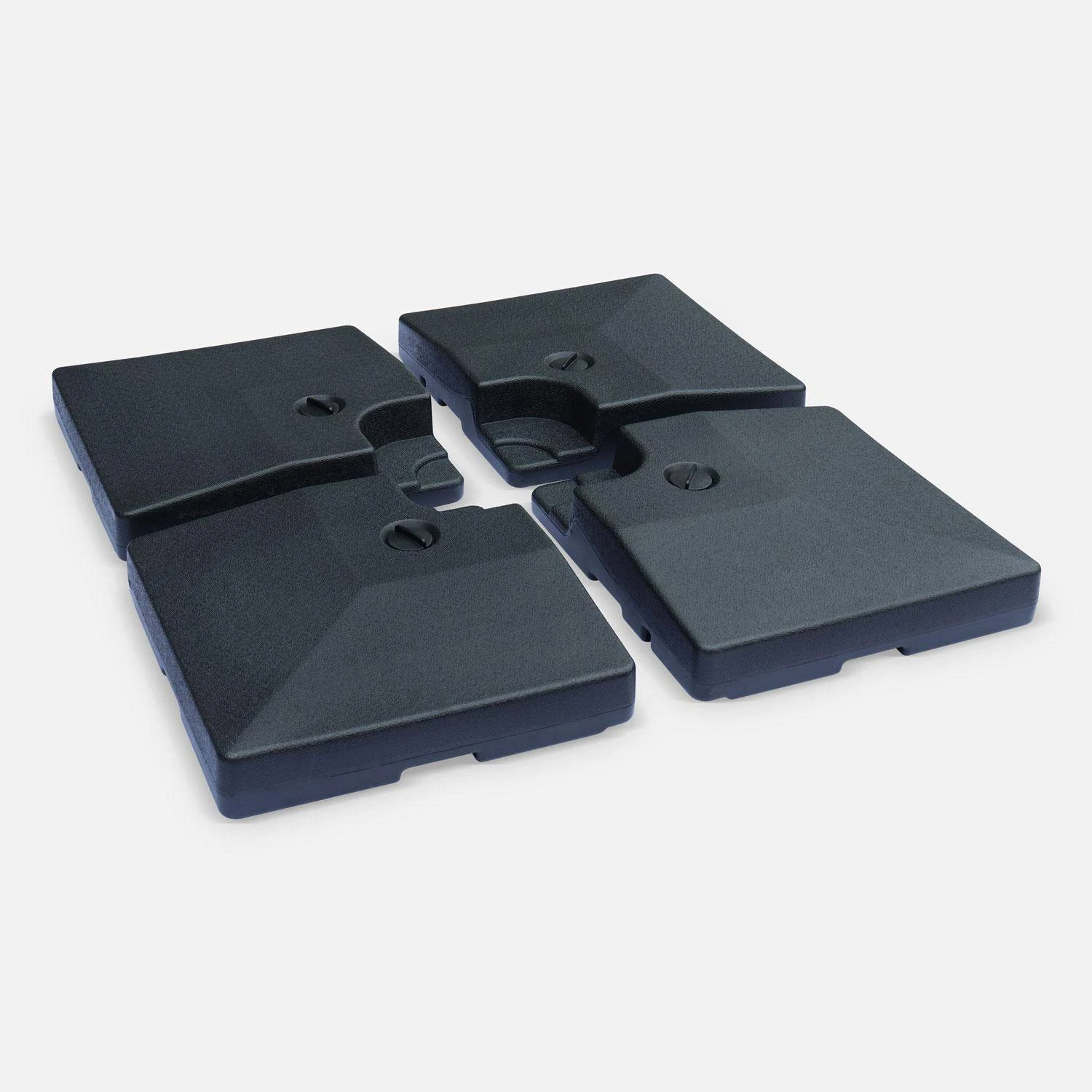 Ces dalles en plastique vous permettent de lester votre parasol déporté dont le pied est de type croix. Elles se remplissent de sable et sont résistantes aux chocs, aux intempéries et à l’usure. Ces dalles carrées sont vendues par lot de 4 uniquement.