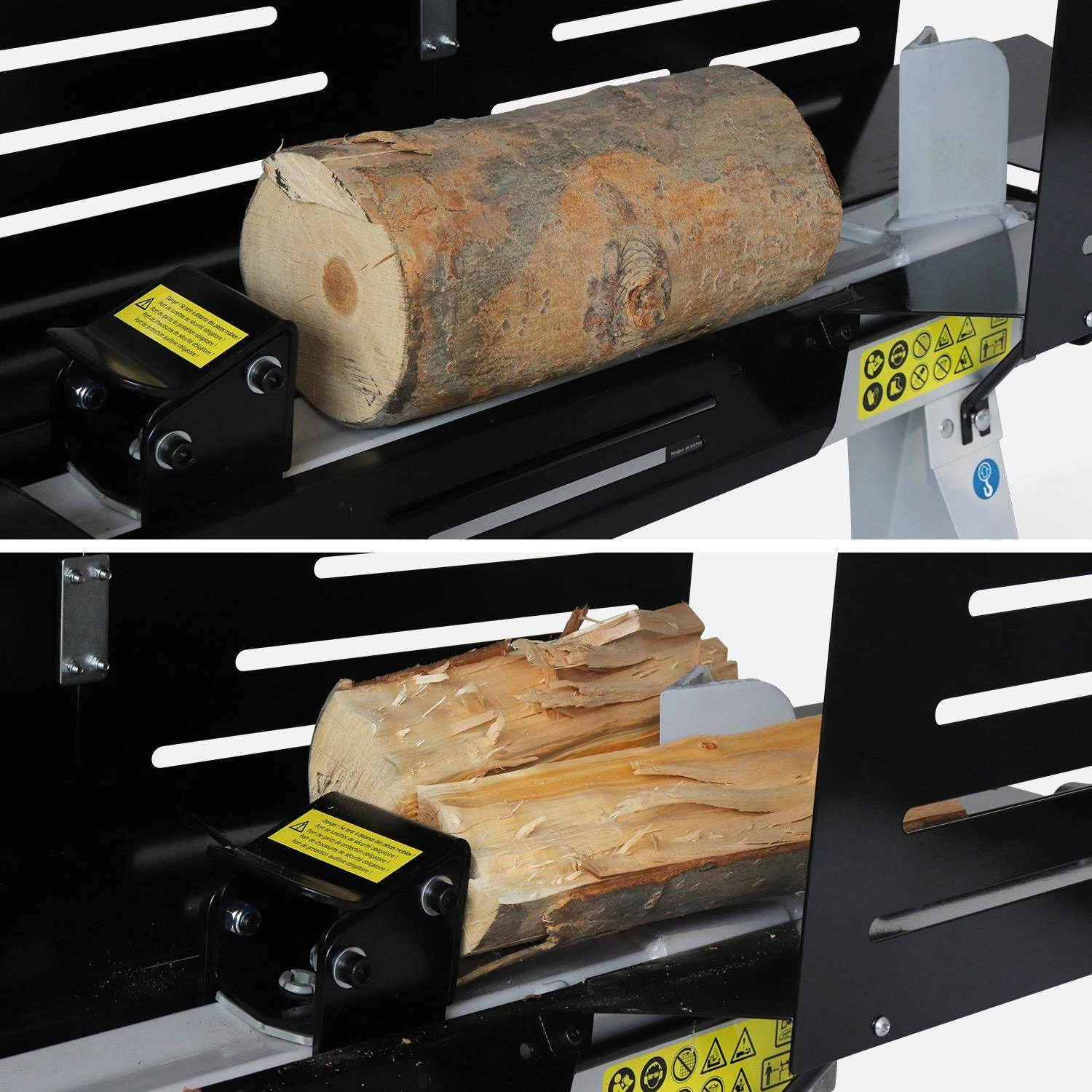 Ses 2 roues permettent de le déplacer et de le transporter facilement. Cette fendeuse à bois est dotée d’une sécurité d’utilisation et d’une protection anti-projection conformément aux normes européennes en vigueur.