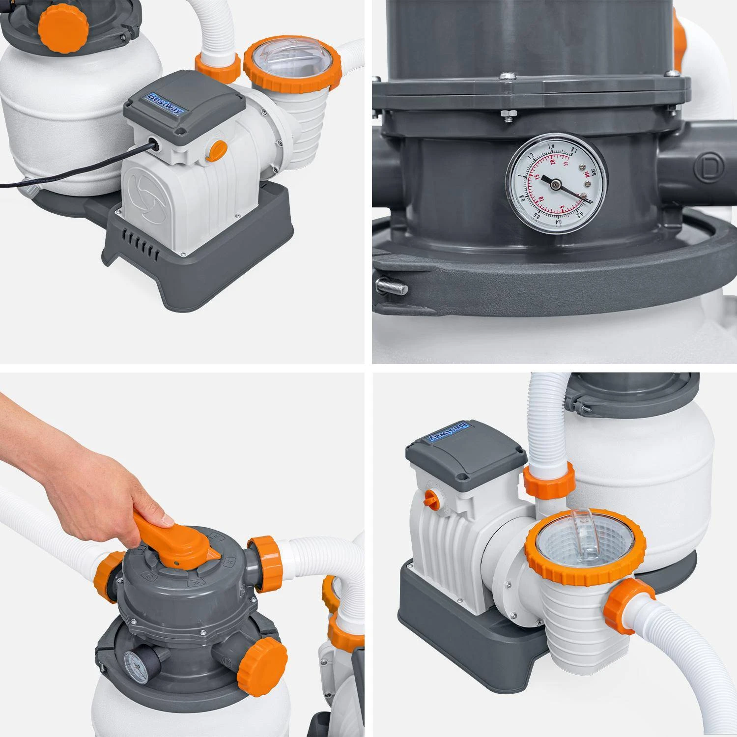 Il sera désormais possible de garder votre piscine propre plus longtemps et de manière plus écologique grâce à ce filtre à sable. Les cartouches filtrantes classiques peuvent être remplacées par du sable de silice, qui peut durer jusqu’à 3 ans. Le diffuseur Chemconnect fourni permettra de doser le niveau de chlore pour votre piscine. Ce filtre est compatible avec les piscines hors sol d’une capacité de 1 100L à 45 000L. Un adaptateur est fourni pour les piscines aux valves de 3.8cm. Il sera aisé de contrôler la filtration de votre piscine grâce à la minuterie intégrée.
