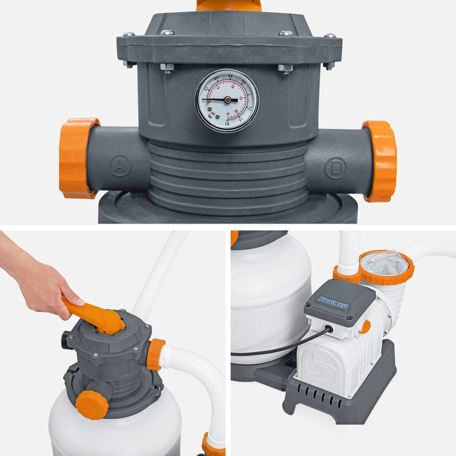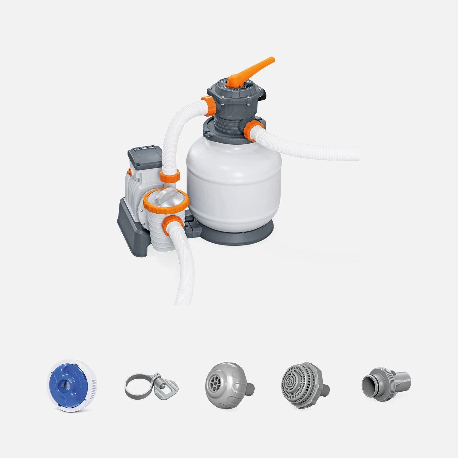 Il sera désormais possible de garder votre piscine propre plus longtemps et de manière plus écologique grâce à ce filtre à sable. Les cartouches filtrantes classiques peuvent être remplacées par du sable de silice, qui peut durer jusqu’à 3 ans. Le préfiltre inclus retiendra les saletés et permettra de prolonger la durée de vie de la pompe. Le diffuseur Chemconnect fourni permettra de doser le niveau de chlore pour votre piscine. Ce filtre est compatible avec les piscines hors sol d’une capacité de 1 100L à 54 500L. Un adaptateur est fourni pour les piscines aux valves de 3.8cm.