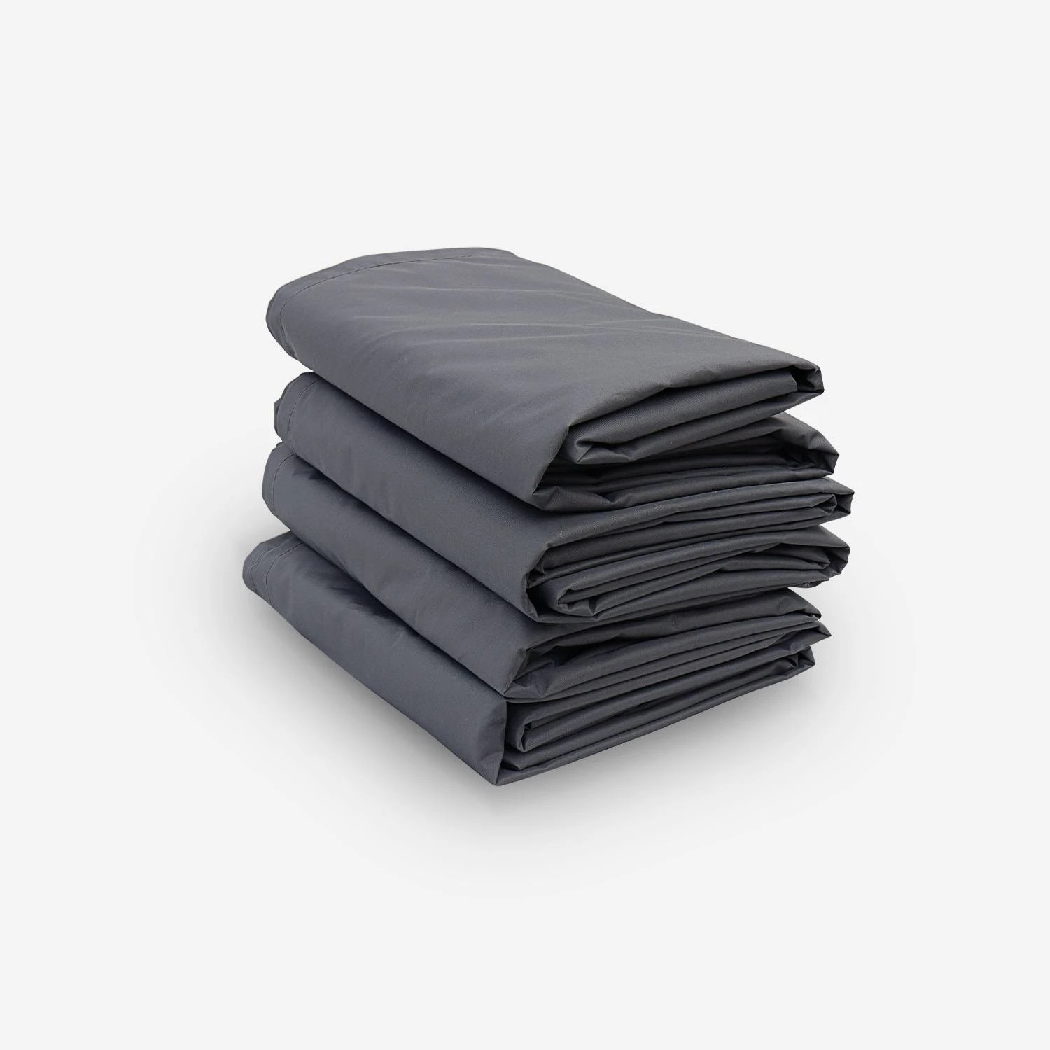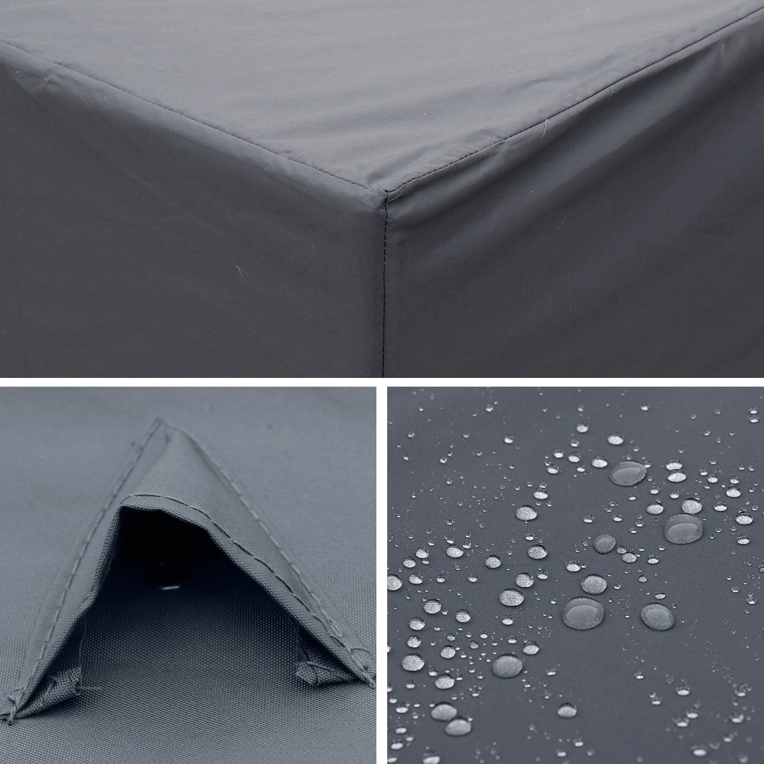 Protégez votre salon de jardin lorsque vous ne l’utilisez pas pour allonger sa durée de vie. Ces quatre housses sont en polyester avec un revêtement en polyamide. Déperlantes et imperméables grâce à l’enduction PA, elles préservent votre ensemble de jardin de la pluie, de la poussière et du soleil. Cela évite l’usure et les dégradations liées aux intempéries. Pratiques, ces housses traitées anti UV sont dotées d’un cordon de serrage avec œillets intégrés. Ce cordon est inséré dans l’ourlet et il ressort dans les angles, cela permet de maintenir les housses sur le salon de jardin. Deux aérateurs placés sur chaque housse empêchent la condensation. L’air libre circule également par le bas. Ainsi, les risques de moisissures sont évités.