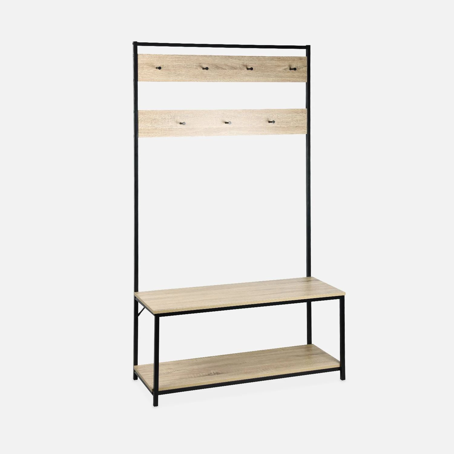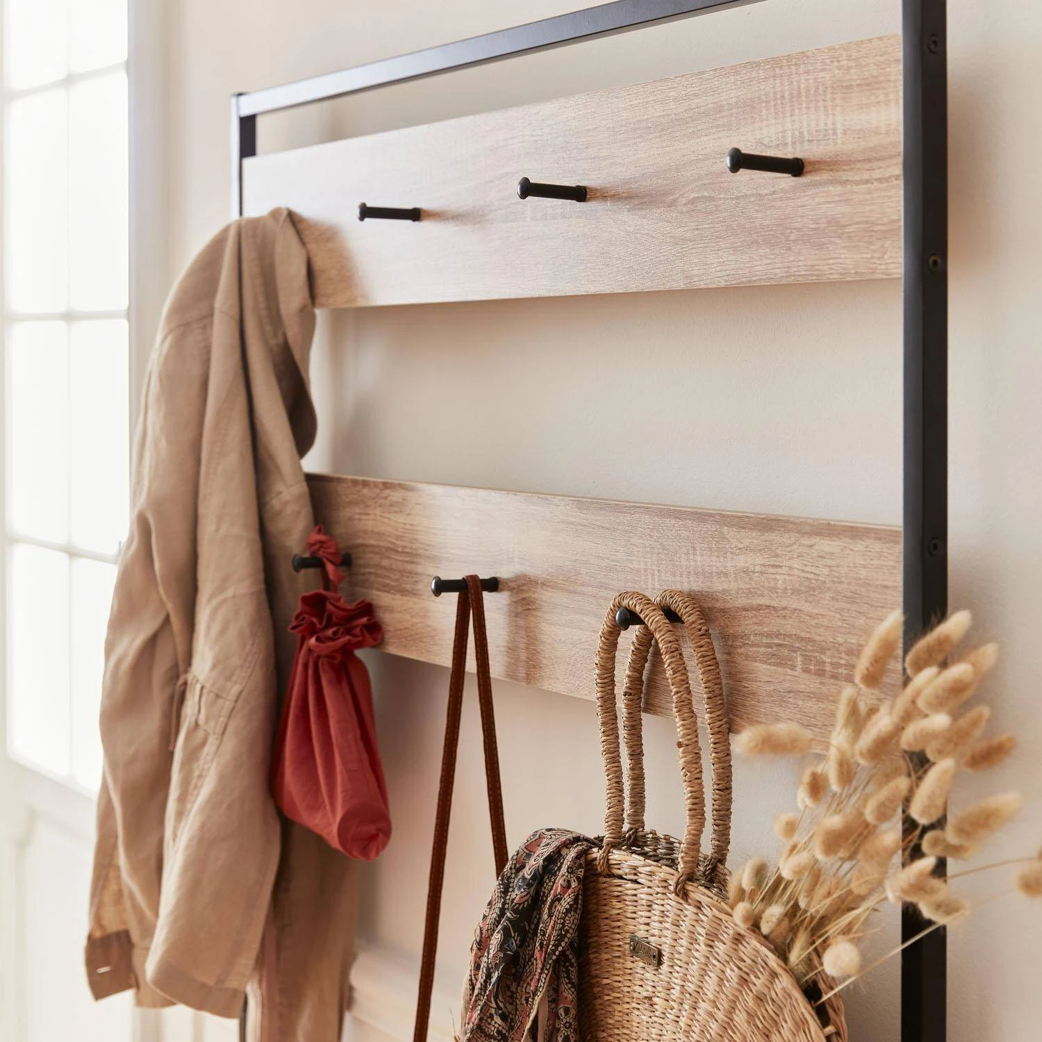 Si vous décidez d’installer ce vestiaire dans votre intérieur, on vous promet que votre rangement sera optimisé. Doté de 7 crochets, ce meuble est pratique et vous permet de suspendre facilement vos manteaux, vestes, sacs et écharpes. Avec ses 2 étagères, vous pouvez également ranger vos paires de chaussures, pour un rendu ordonné.
