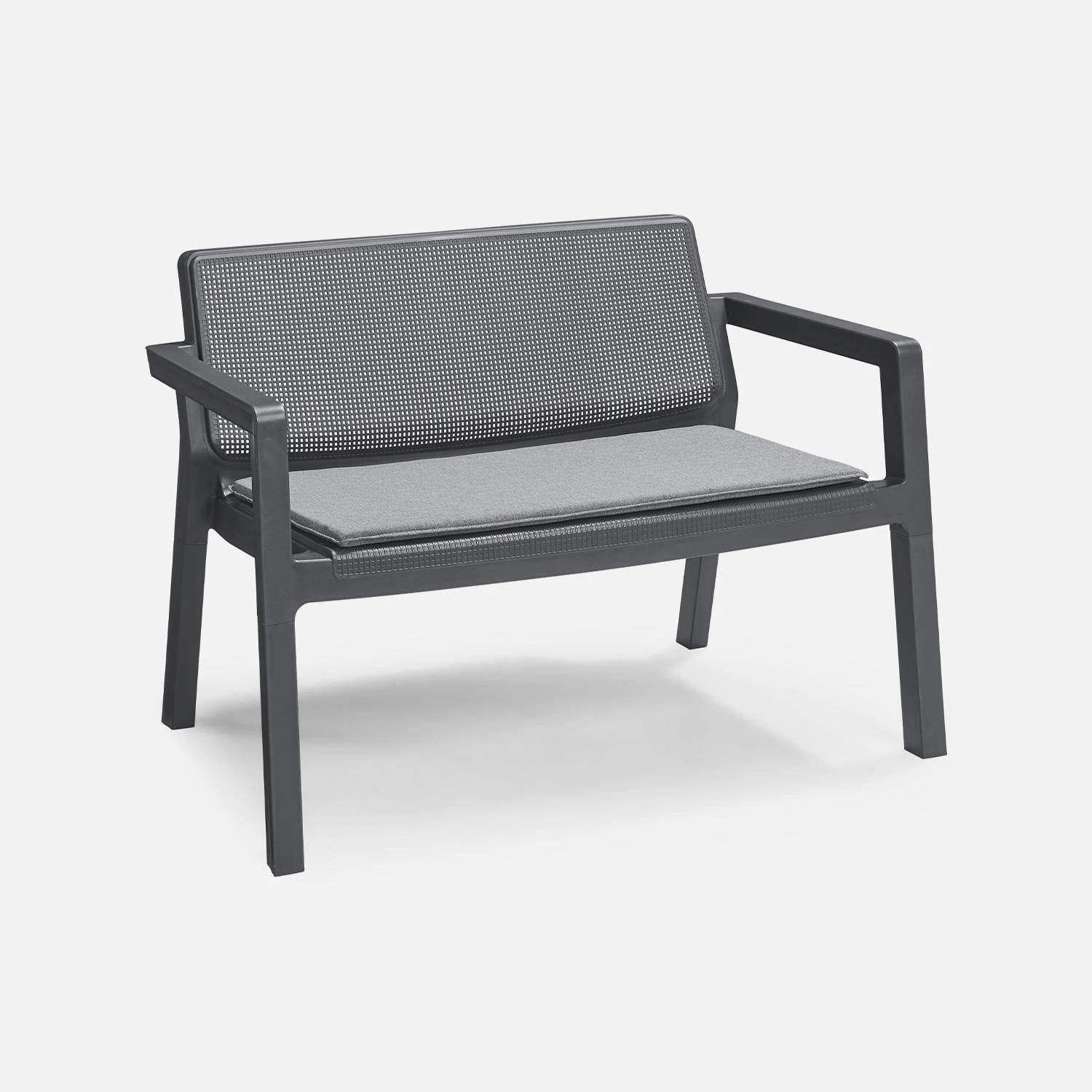 Le salon de jardin Emily viendra habiller votre terrasse ou votre balcon avec élégance. Moderne, il est fabriqué en résine plastique injectée de synthèse qui résistera à toutes les conditions climatiques et aux rayons UV. La durée de vie de ce produit en sera donc prolongée.