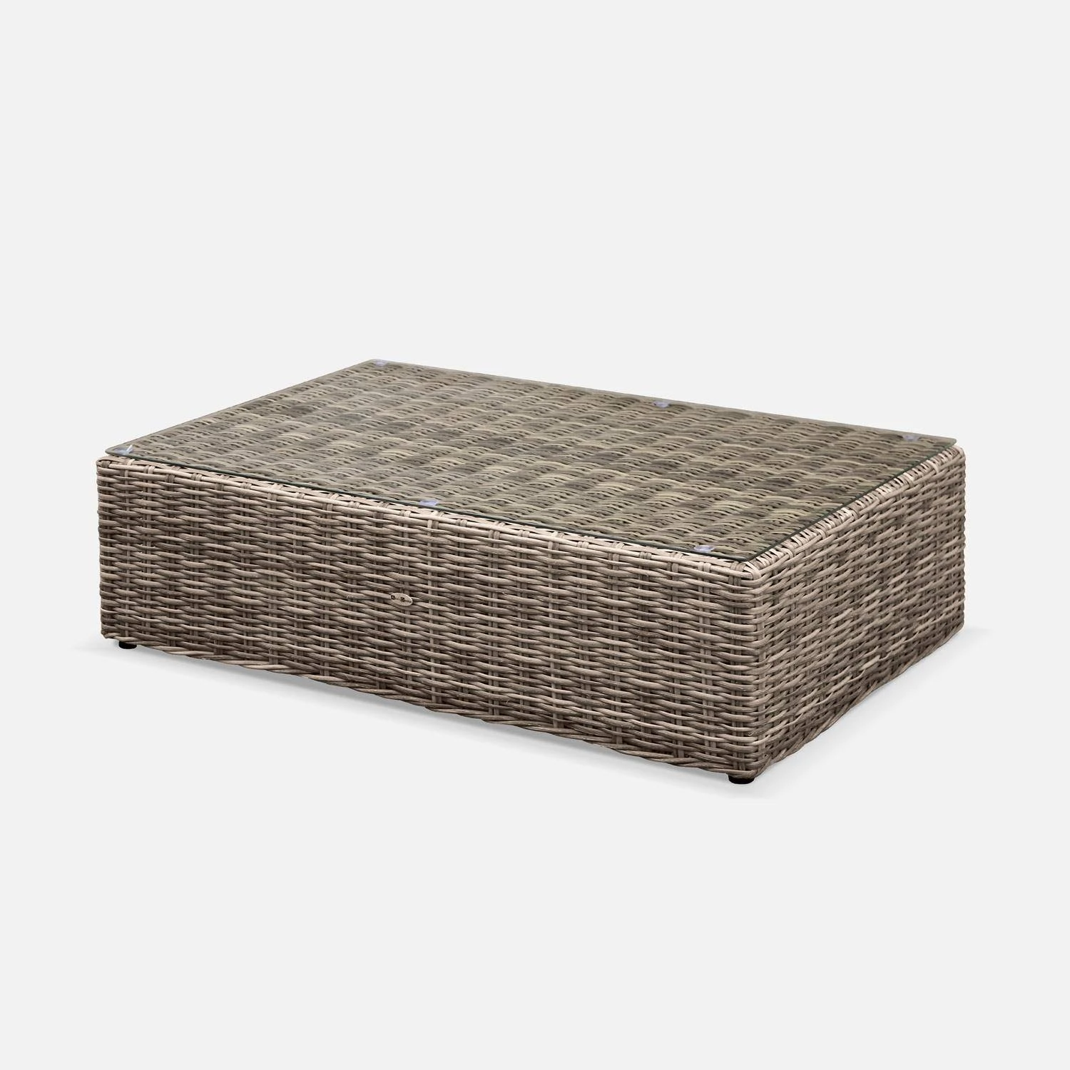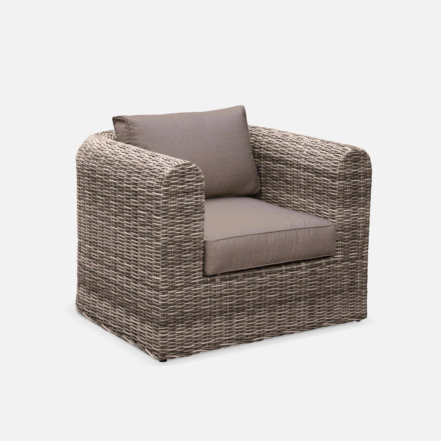 sweeek sélectionne avec attention la qualité de la matière choisie pour le tressage. De ce fait, la durée de vie du Juliano est exceptionnelle ! La résine tressée arrondie sweeek supporte les rayons du soleil et les intempéries (neige/ pluie / eaux salées). Les coussins sont déhoussables et résistants à l’eau. Pour garantir une résistance maximale, la structure du salon de jardin est en aluminium renforcé (ne rouille pas par nature). Les structures en aluminium sont, en plus, bien plus légères que les structures en acier. Le plateau de la table basse est en verre sécurit de 5mm. C’est un verre 5 fois plus résistant que le verre traditionnel.