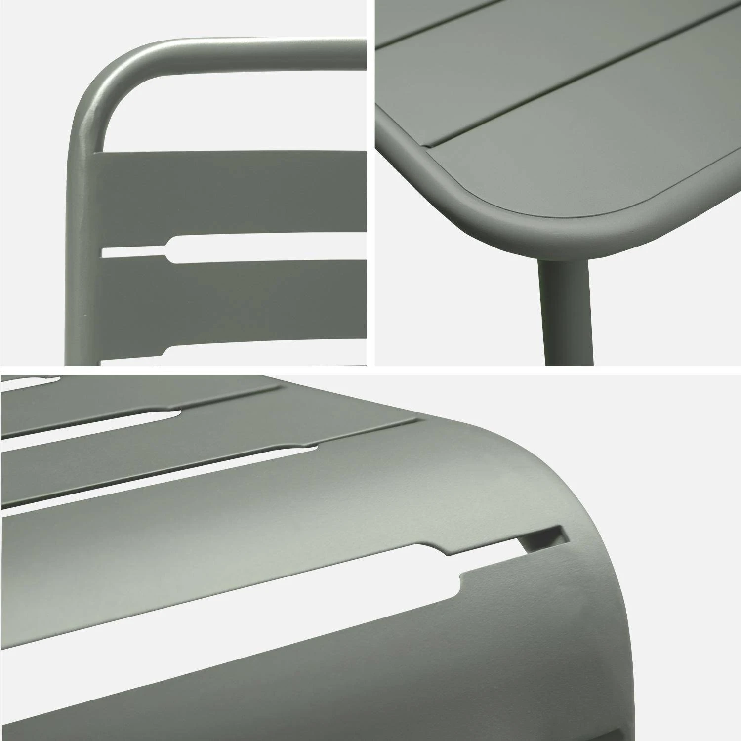 La table de jardin Amélia et ses 6 chaises sont en acier robuste qui dispose d’un traitement antirouille pour une meilleure longévité. Ainsi, l’humidité de l’extérieur ne viendra pas abîmer et attaquer sa matière. Adaptée à une utilisation extérieure, l’ensemble possède des lattes et des bords arrondis qui lui apportent un réel charme ! L’eau de pluie est facilement évacuée à l’aide des fentes de la table bistrot.