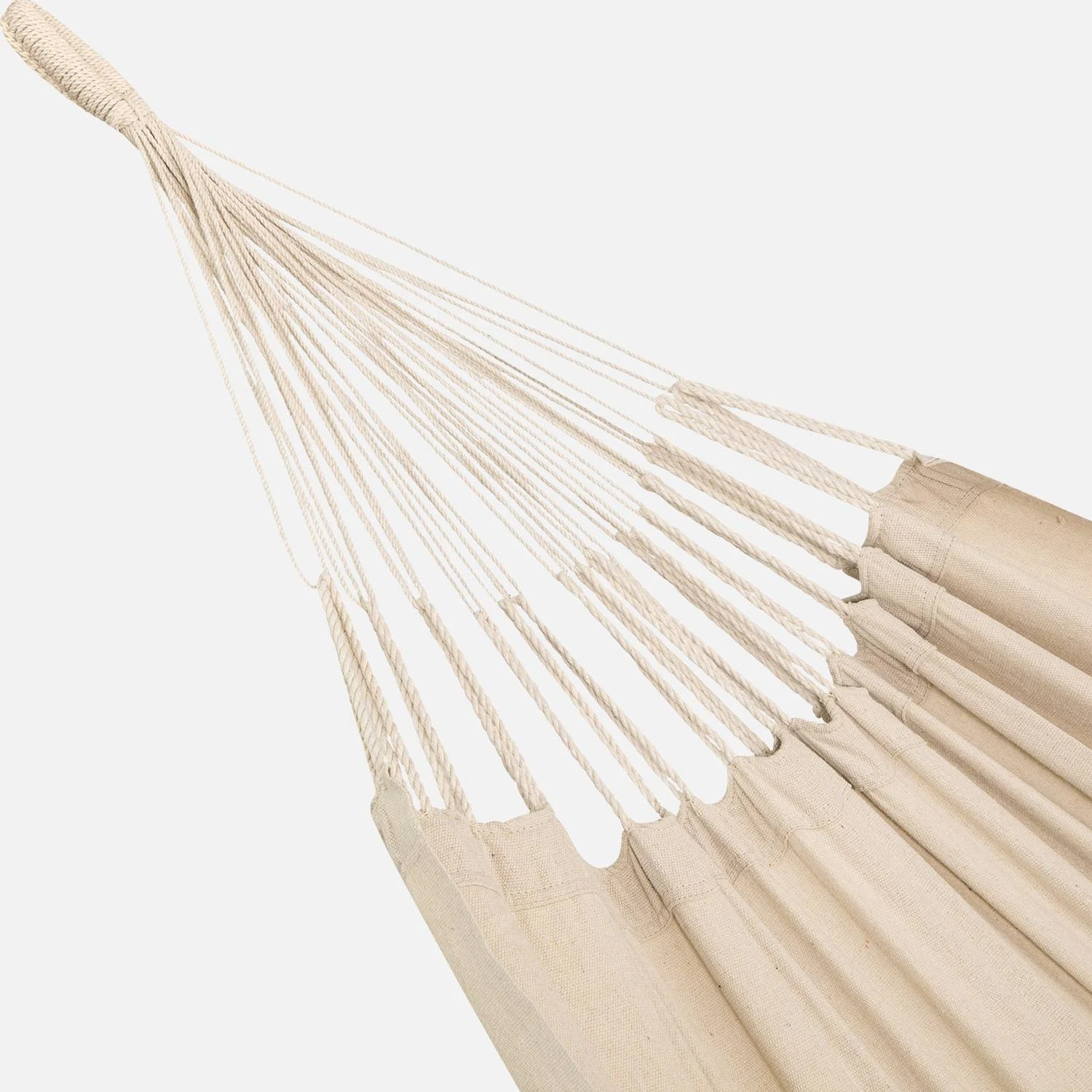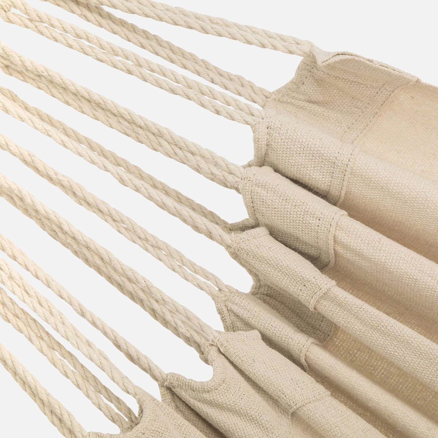 Imaginez-vous lors de belles journées d’été accrocher votre hamac entre deux arbres ou toute l’année dans votre maison. De quoi vous y installer confortablement, de lire, bronzer ou encore de vous y reposer. Son tissu en poly coton vous offrant un confort optimal.